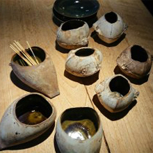 1219窯は、わび、さびといった日本文化を代表する伊賀焼を三重県伊賀市(旧阿山町))の伊賀焼の里で修業した後、都会の中で、新しい伊賀焼を目指し作陶に励んでいます。伊賀焼は、色や、形など、個性的で、料理をより美味しく見せる心遣いに満ちています。この心遣いは、茶人だった城主のもとで作られていた茶陶の、口当たりや手触りへのこだわりから生まれたものです。赤く燃え盛る色を映した火色の小石まじりの肌合い、水気を帯びた伊賀焼の器に料理を盛り、酒を注げば緑色のビ-ドロが映え、味までも引き立てます。伊賀焼は料理の引き立て役です。食器としての使用はもちろん「室内装飾」「店舗装飾」にも使用出来る様な形を理想とし新しい使用感覚を発見出来る物を作っていきたいと考えています。